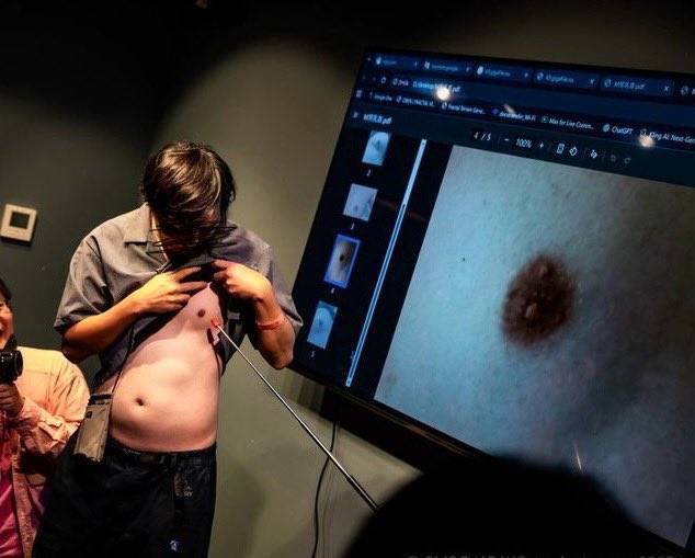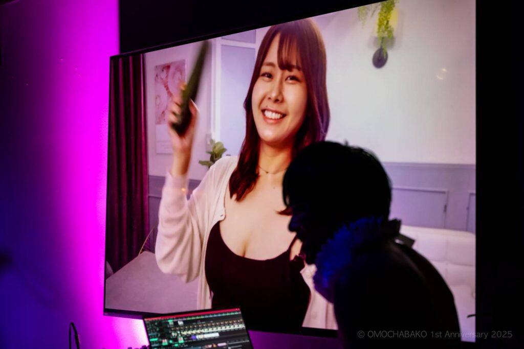 巨大モニターに映し出される“検証画像”と、桃うどんの冷静な進行。